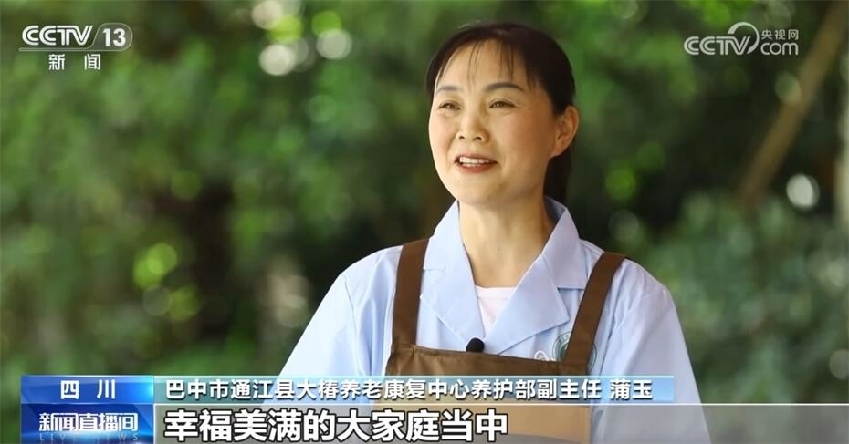 四川省巴中市通江縣大椿養(yǎng)老康復(fù)中心養(yǎng)護部副主任蒲玉稱:“在護理的過程當中,我會通過情緒安撫,說一些老年人喜歡的話題,引導(dǎo)老人飲食。”