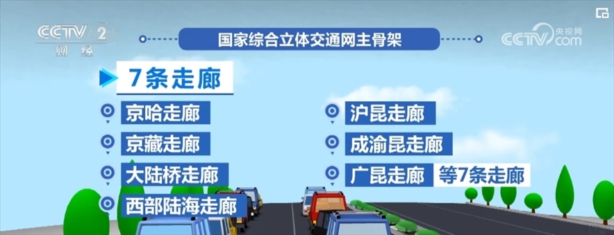 國(guó)家綜合立體交通網(wǎng)主骨架可以概括為“6軸、7廊、8通道”,即6條主軸、7條走廊、8條通道。