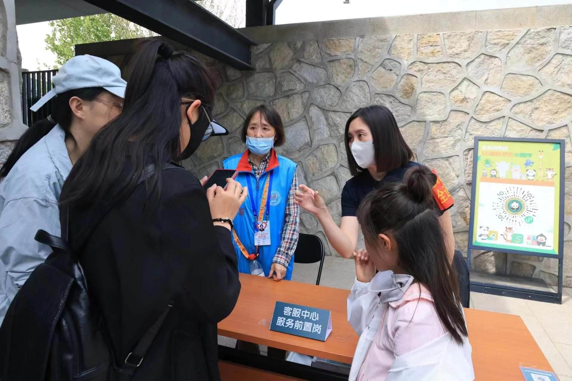 北京動物園新、老大門同時開放,18條通道全部打開,方便游客快捷入園。公園正門設(shè)置游客服務(wù)前置崗,及時解答游客咨詢,最大限度為游客提供便利,引導(dǎo)游客有序入園。熱門場館大熊貓館游客絡(luò)繹不絕,“萌蘭”場館前實行單向小循環(huán)排隊參觀,館外實行單向大循環(huán),分段為排隊游客提供解答。公園全員上崗,職工與社會志愿者、公共文明引導(dǎo)員共同加強秩序疏導(dǎo)及不文明行為治理,引導(dǎo)游客有序參觀。