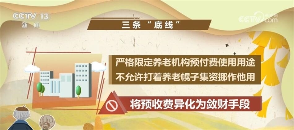 發(fā)布會上,民政部相關(guān)負(fù)責(zé)人介紹,《意見》還明確了三條安全“底線”:第一條是嚴(yán)禁養(yǎng)老機構(gòu)超過床位供給能力“一床多賣”;第二條是嚴(yán)格限定養(yǎng)老機構(gòu)預(yù)付費使用用途,不允許打著養(yǎng)老幌子集資挪作他用,將預(yù)收費異化為斂財手段;第三條是明確不得以承諾還本付息、給予其他投資回報等方式,誘導(dǎo)老年人及家屬交費,這是典型的非法集資行為。