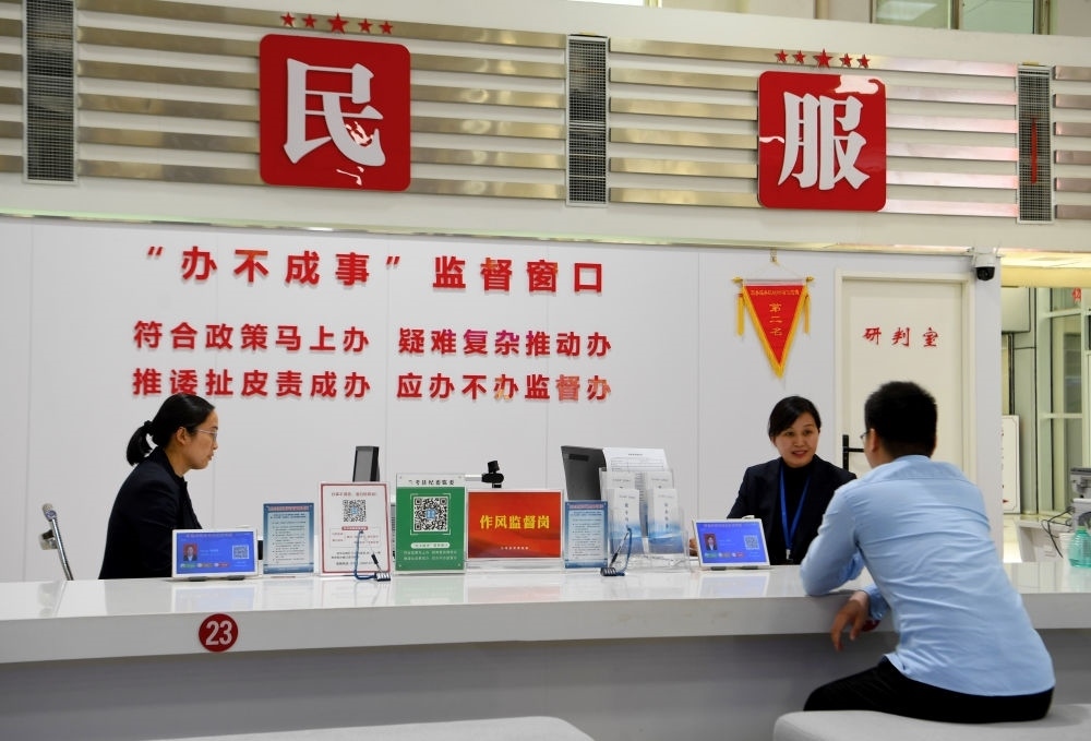 2024年4月18日,群眾在蘭考縣為民服務中心“辦不成事”監(jiān)督窗口辦理業(yè)務。新華社記者 郝源 攝