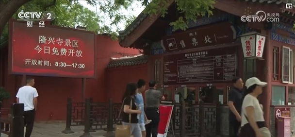 在正定縣隆興寺、趙云廟景區(qū)也在入口醒目的位置擺出免門票惠民的告示,慕名前來的游客絡(luò)繹不絕。