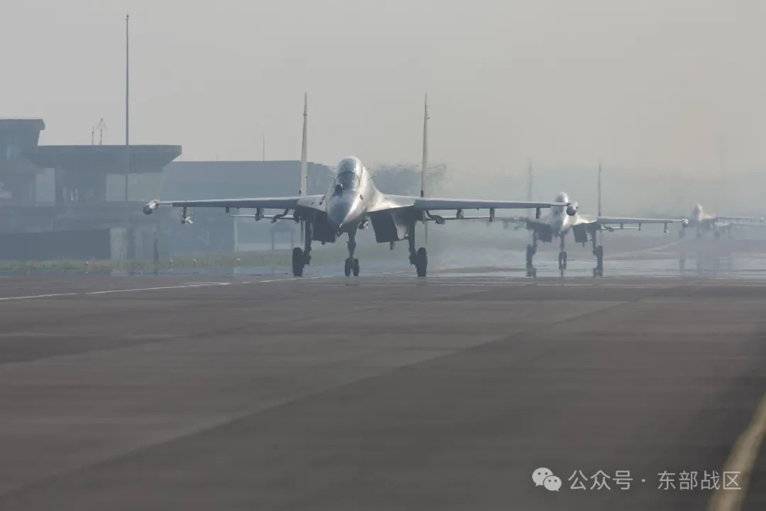 ▲戰(zhàn)機(jī)滑向起飛線。
