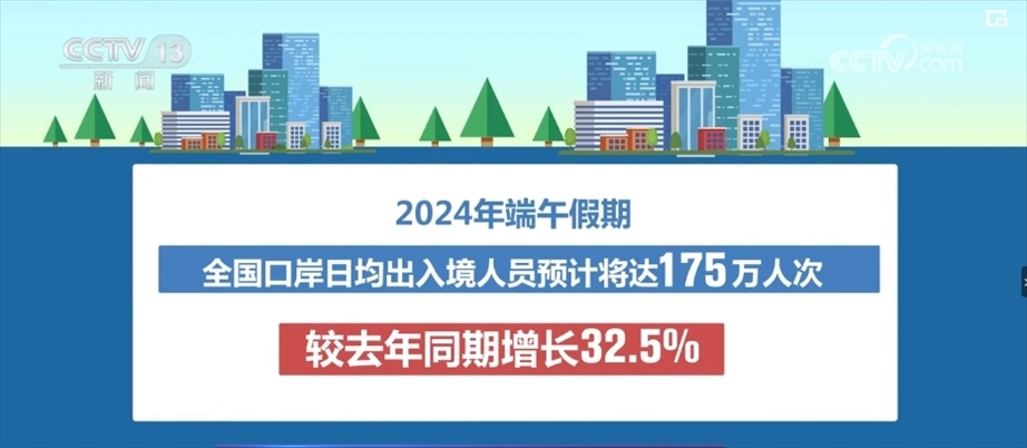 央視網(wǎng)消息:記者6月6日從國家移民管理局獲悉,2024年端午假期,全國口岸日均出入境人員預計將達175萬人次,較2023年同期增長32.5%。