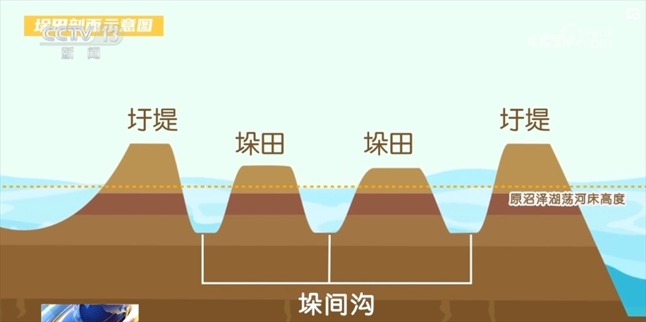 向下挖出“網(wǎng)”狀深溝、向上堆出“垛”狀高田,同樣的土量換個位置,就能將原本都在水下的地面,變成一高一低的垛田與河道,增加可耕種土地面積。