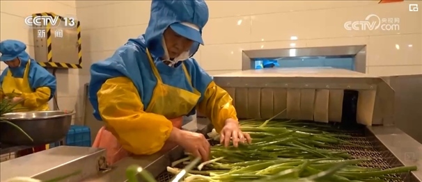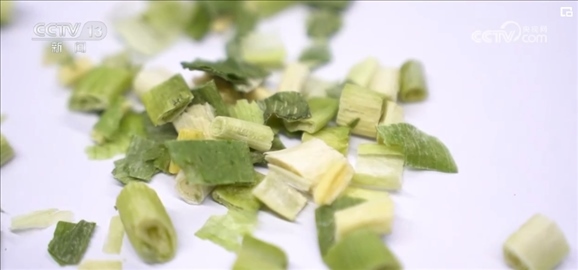 香蔥被運輸?shù)疆數(shù)氐募庸S后,經(jīng)過洗、理、切、分揀裝盤,然后就開始了高科技的“蛻變”之旅。工人先把香蔥放入冷庫冷凍數(shù)小時,然后立即抽真空“升華”干燥,經(jīng)過48小時左右的一系列工序后,一棵香蔥就變成了脫水蔬菜。留學回國創(chuàng)業(yè)的王一盛介紹,與過去使用的熱風干燥技術相比,這種新技術不僅讓垛田香蔥最大程度鎖鮮,價格也比過去增加了五六倍。