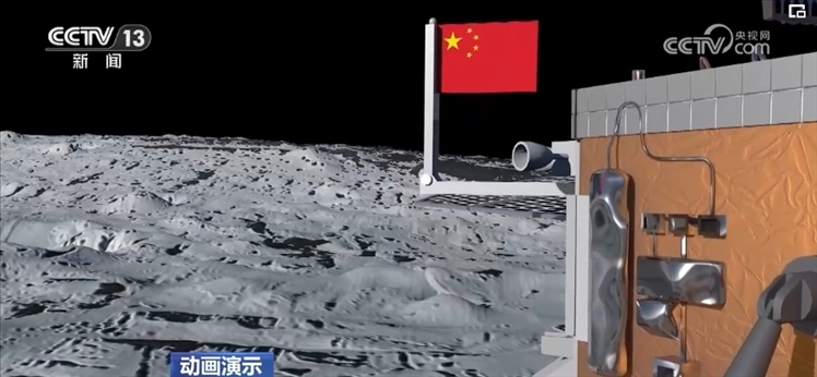 空天兔:著陸器和上升器組合體先進(jìn)行了幾個(gè)小時(shí)的鉆取,就是把一個(gè)長長的鉆頭伸入月面,可以采集月表以下的樣品,休息了幾小時(shí)后,當(dāng)鵲橋二號姐姐再次發(fā)來指令,著上組合體又用機(jī)械臂進(jìn)行了十多個(gè)小時(shí)的表取采樣,也就是一鏟子一鏟子地挖月球表面的土壤。過程很漫長,可不像你剛剛抓住我們能那么輕松。采樣完成后,一面五星紅旗在月球背面展開。哇,特別鮮艷。