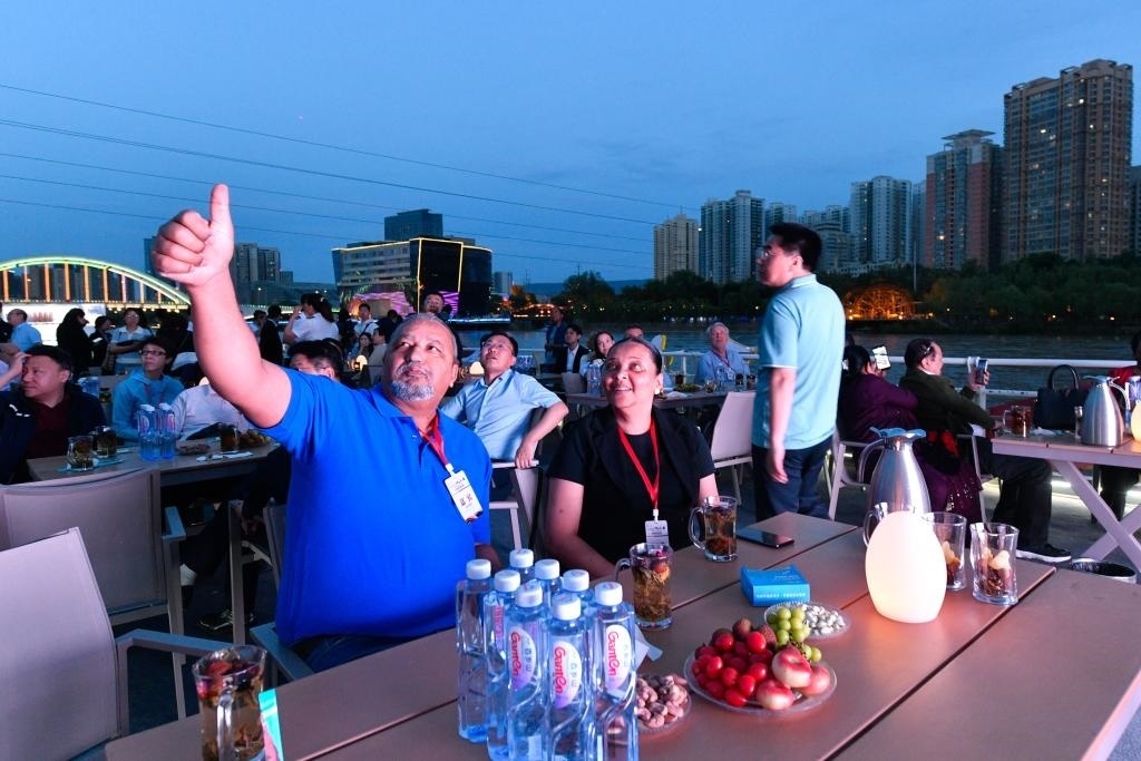 6月5日,多國外交官在黃河蘭州段乘坐游船。新華社記者 郎兵兵 攝