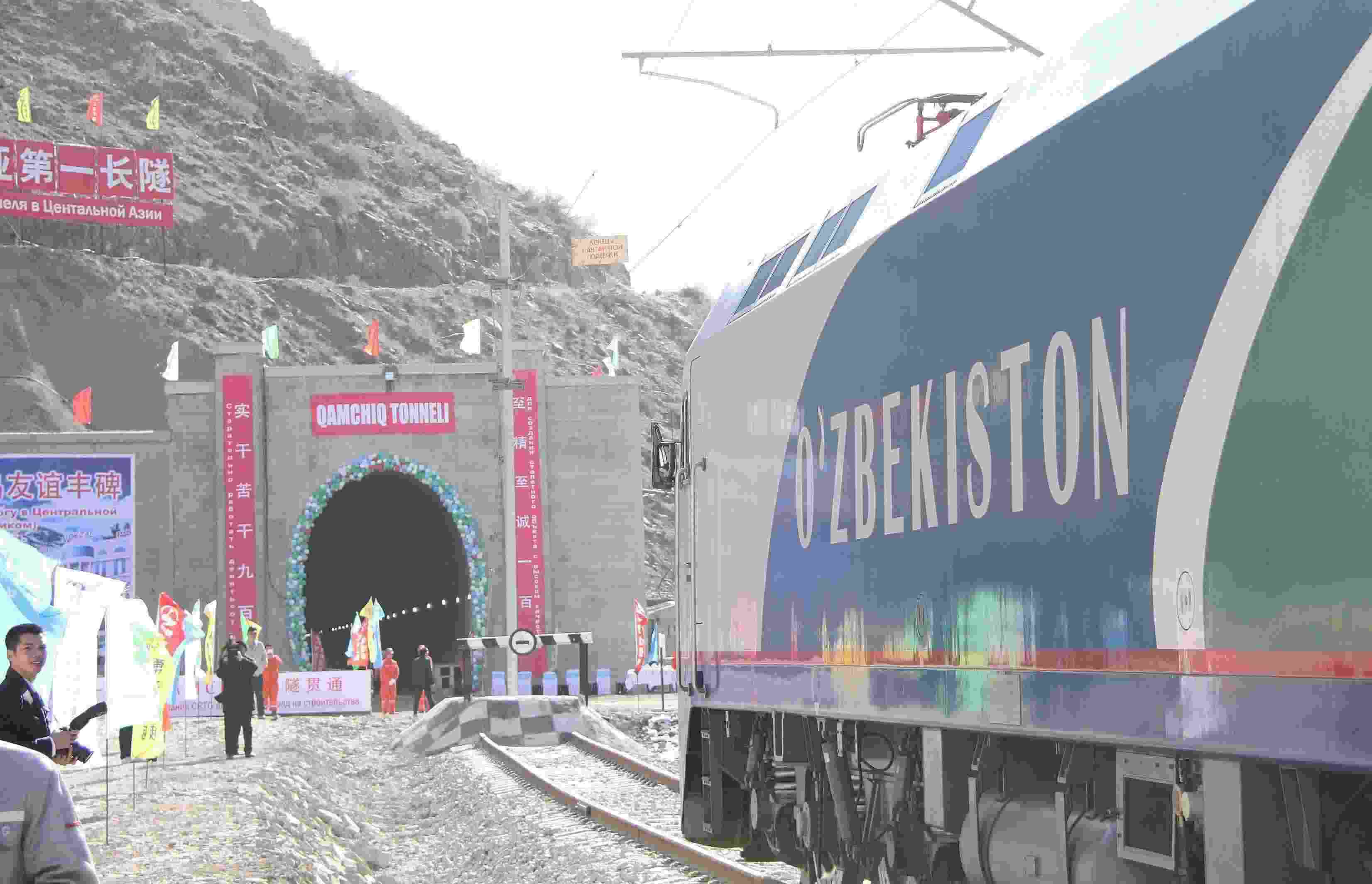△ 2016年2月27日,一列專列停在烏茲別克斯坦安格連至琶布鐵路甘姆奇克隧道進口。甘姆奇克隧道是中吉烏鐵路的重要一環(huán),對促進烏茲別克斯坦經(jīng)濟社會發(fā)展和共建“一帶一路”倡議的實施具有重大意義。