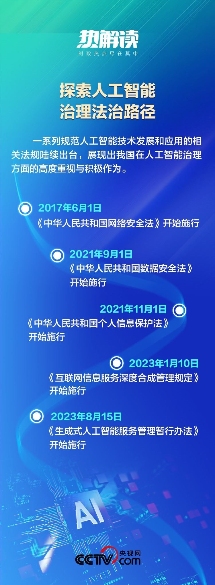 2023年10月,第三屆“一帶一路”國(guó)際合作高峰論壇開(kāi)幕,習(xí)主席宣布中方提出《全球人工智能治理倡議》。這一倡議堅(jiān)持“以人為本、智能向善”,為世界提供了基于人類命運(yùn)共同體理念的人工智能治理新視角。