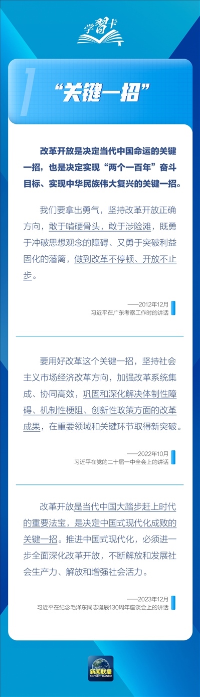 改革開放是當(dāng)代中國大踏步趕上時(shí)代的重要法寶,是決定中國式現(xiàn)代化成敗的關(guān)鍵一招。