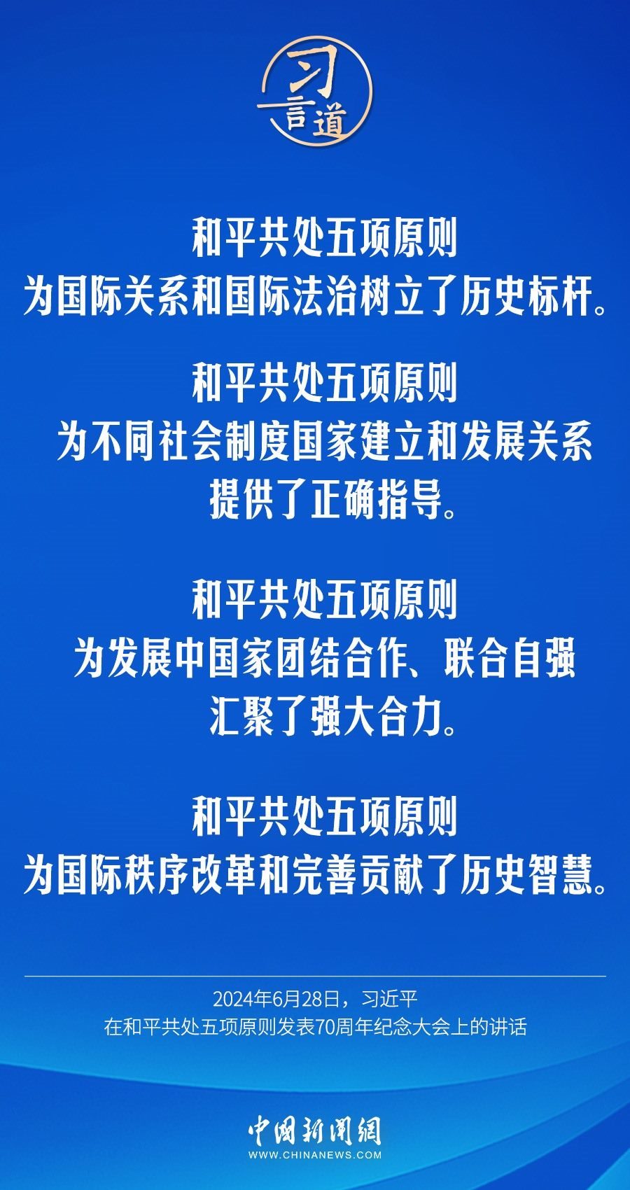 6月28日,國(guó)家主席習(xí)近平在北京人民大會(huì)堂出席和平共處五項(xiàng)原則發(fā)表70周年紀(jì)念大會(huì)并發(fā)表重要講話。習(xí)近平指出——