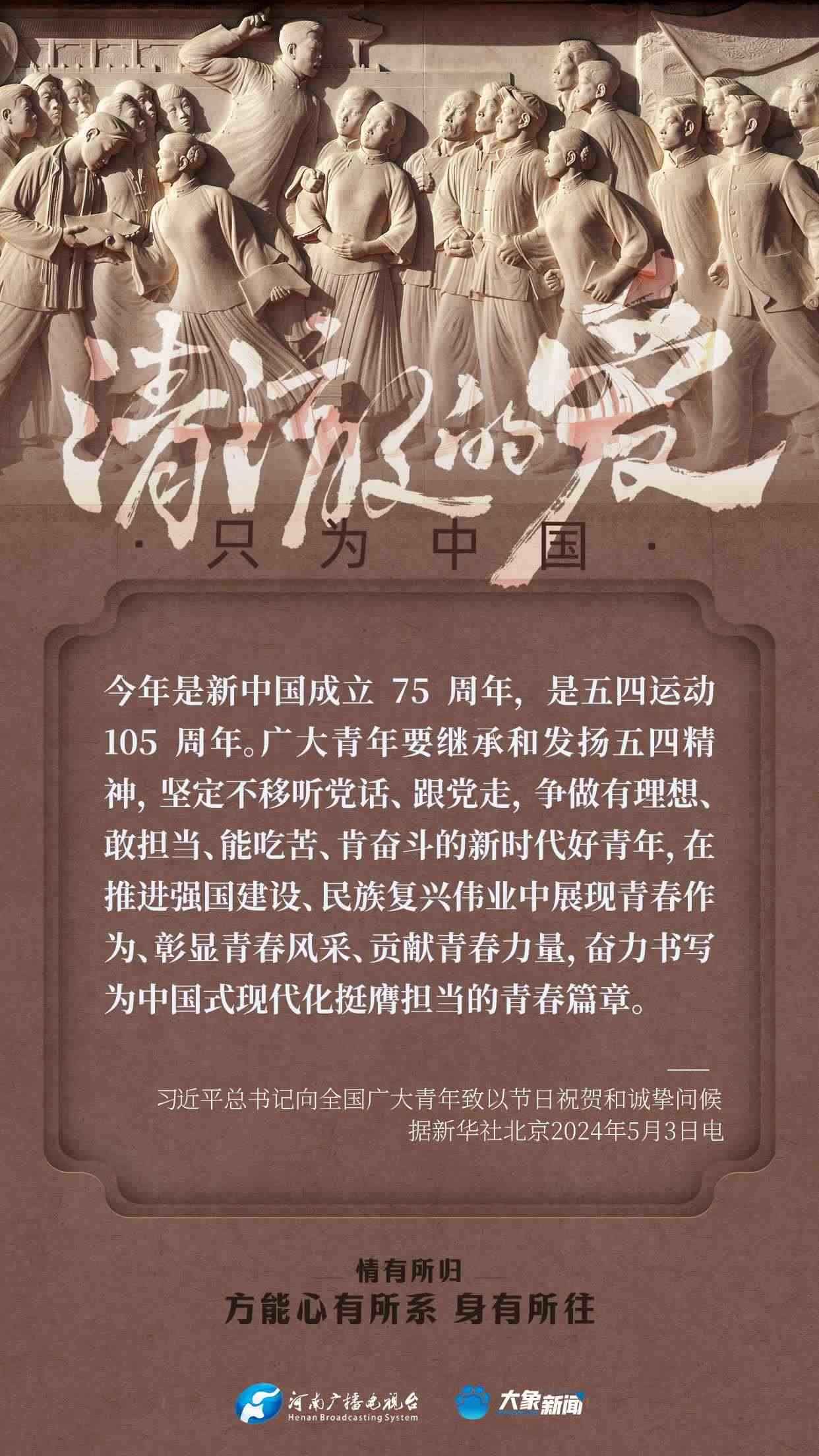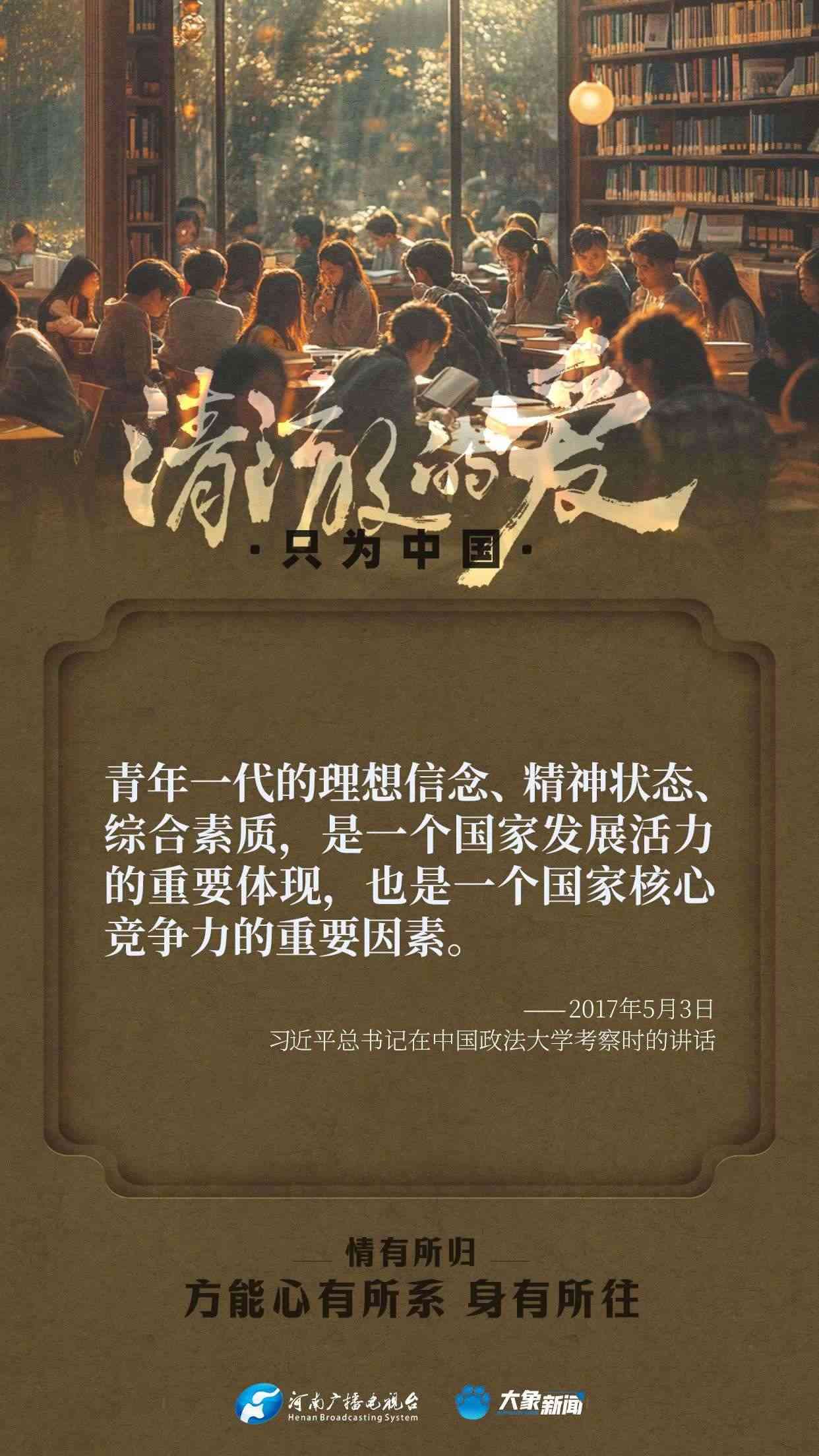 習近平總書記對廣大青年寄予厚望。黨的十八大以來,他多次來到青年中間,同大家談人生、話理想,鼓勵青年人心系祖國,志存高遠,腳踏實地,在奮斗中創(chuàng)造精彩人生,為祖國和人民貢獻青春和力量。