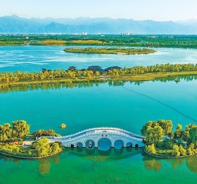 陜西省西咸新區(qū)灃東新城昆明池,青山綠水相映成趣。查朝陽(yáng)攝(影像中國(guó))