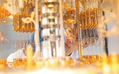 與時(shí)俱進(jìn)全面深化改革 深圳國(guó)際量子研究院超導(dǎo)量子計(jì)算實(shí)驗(yàn)室,實(shí)驗(yàn)人員正在調(diào)試稀釋制冷機(jī)。楊浩翰攝(人民視覺(jué))