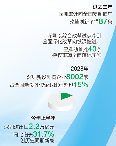 改革開放釋放澎湃動(dòng)能。深圳發(fā)布支持外商投資生物醫(yī)藥領(lǐng)域、實(shí)施跨境貿(mào)易投資高水平開放政策試點(diǎn)等20條措施,出臺(tái)優(yōu)化國(guó)際化營(yíng)商環(huán)境工作方案,持續(xù)提升對(duì)全球優(yōu)質(zhì)要素資源的強(qiáng)大吸引力。去年全年,深圳新設(shè)外資企業(yè)8002家,占全國(guó)新設(shè)外資企業(yè)比重超過(guò)15%;今年上半年,深圳進(jìn)出口總額2.2萬(wàn)億元,同比增長(zhǎng)31.7%,創(chuàng)深圳歷史同期新高。