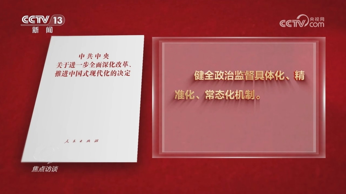 黨的作風就是黨的形象,關系人心向背,關系黨的生死存亡。腐敗是黨長期執(zhí)政的最大威脅。新征程上,如果嚴的基調(diào)稍有放松,不正之風和腐敗就會卷土重來,《決定》提出,健全政治監(jiān)督具體化、精準化、常態(tài)化機制。