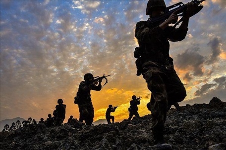 ▲ “強(qiáng)軍精武紅四連”官兵在陌生地域開展戰(zhàn)場(chǎng)搜索訓(xùn)練。
