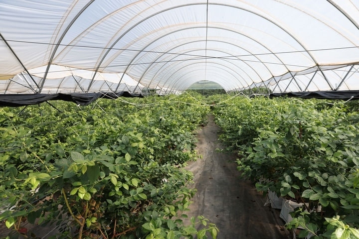 這是2024年8月1日在云南永仁縣蓮池鄉(xiāng)拍攝的藍莓種植基地。 新華社記者 呂帥 攝