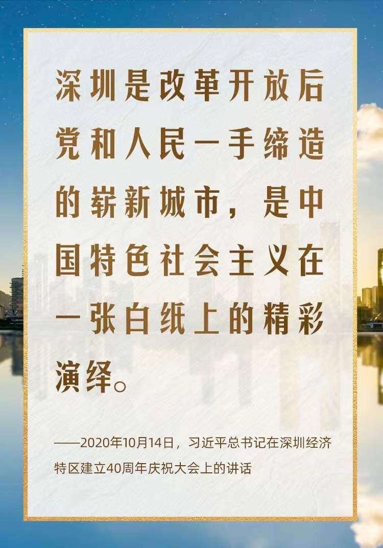 2020年10月,在慶祝深圳經(jīng)濟(jì)特區(qū)建立40周年之際,習(xí)近平總書記又一次來(lái)到這里,出席慶祝大會(huì),強(qiáng)調(diào)改革不停頓、開(kāi)放不止步,在更高起點(diǎn)上推進(jìn)改革開(kāi)放,推動(dòng)經(jīng)濟(jì)特區(qū)工作開(kāi)創(chuàng)新局面。