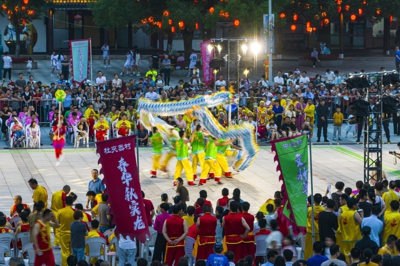 寧波市鎮(zhèn)海區(qū)九龍湖鎮(zhèn),當地居民自發(fā)組成的14支舞龍隊同臺競技 省農業(yè)農村廳供圖