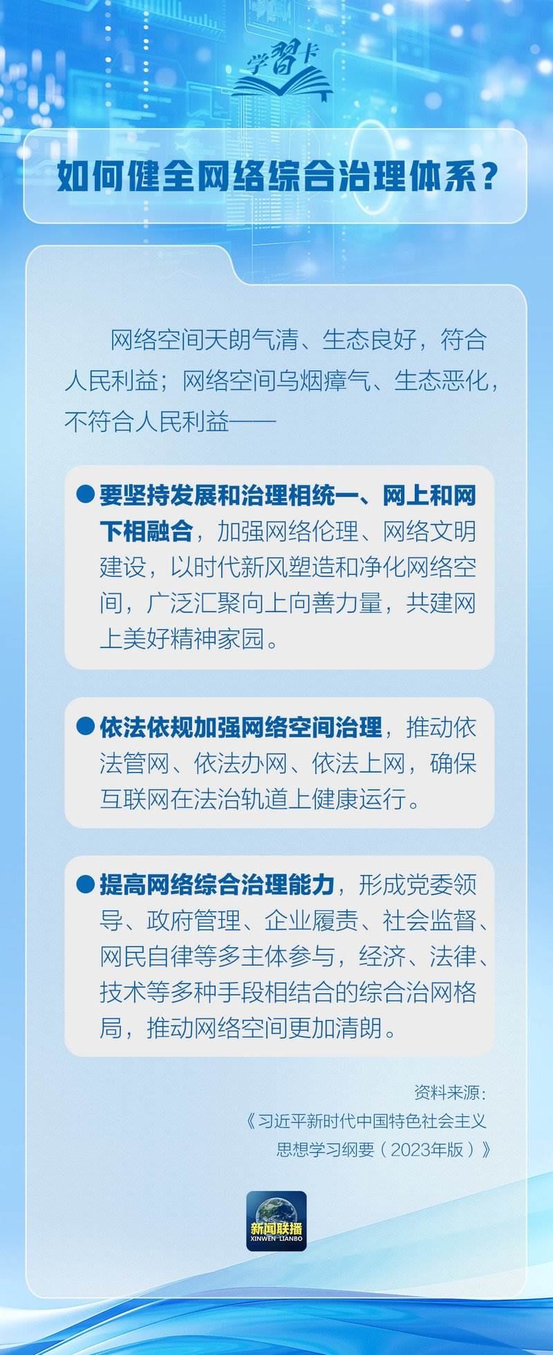 習近平總書記在《關于〈中共中央關于進一步全面深化改革、推進中國式現(xiàn)代化的決定〉的說明》中強調要健全網(wǎng)絡綜合治理體系。