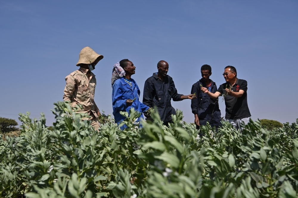 2023年9月27日,在位于厄立特里亞阿斯馬拉的農(nóng)業(yè)技術(shù)援助項(xiàng)目示范地,中國(guó)援厄第三期高級(jí)農(nóng)業(yè)專(zhuān)家組豆類(lèi)作物專(zhuān)家劉運(yùn)民(右一)與當(dāng)?shù)剞r(nóng)戶(hù)交流。為推動(dòng)厄立特里亞農(nóng)業(yè)產(chǎn)業(yè)發(fā)展,中國(guó)農(nóng)業(yè)農(nóng)村部已派出多批專(zhuān)家在厄立特里亞開(kāi)展涉及豆類(lèi)作物、果樹(shù)園藝、油料等領(lǐng)域的技術(shù)援助工作。