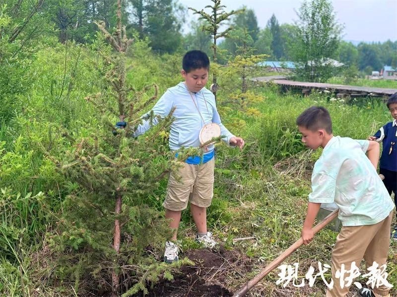 這樣的美麗風景讓第一次來到大草原的周云昊很興奮?!拔覀儚漠?shù)亓私獾剑@是一代又一代人努力的結果,讓我們也深切感受到生態(tài)保護的重要性。”研學途中,周云昊和小伙伴們還專門在當?shù)亓謭龇N下一棵樹?!跋M芙】甸L大,成為守護綠色草原的小衛(wèi)士。”