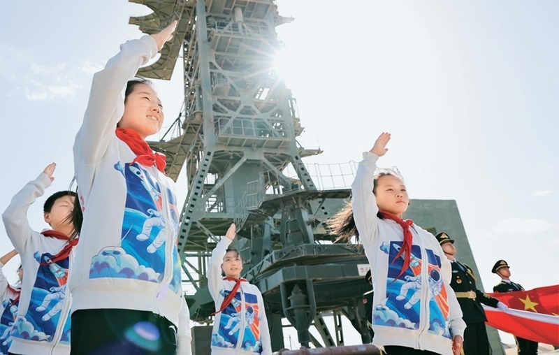 少先隊(duì)是建設(shè)社會(huì)主義和共產(chǎn)主義的預(yù)備隊(duì)。廣大少先隊(duì)員在少先隊(duì)這所大學(xué)校里立志向、修品行、練本領(lǐng),從小培養(yǎng)熱愛黨、熱愛祖國、熱愛人民的情懷,展現(xiàn)出朝氣蓬勃的精神風(fēng)貌。2024年4月24日是第九個(gè)“中國航天日”,“紅領(lǐng)巾愛祖國——我心中的五星紅旗”主題活動(dòng)在中國酒泉衛(wèi)星發(fā)射中心東方紅衛(wèi)星發(fā)射場(chǎng)舉行。圖為當(dāng)日,來自內(nèi)蒙古、甘肅、四川等地的少先隊(duì)員在中國酒泉衛(wèi)星發(fā)射中心東方紅衛(wèi)星發(fā)射塔架下敬隊(duì)禮。 新華社記者 金立旺/攝