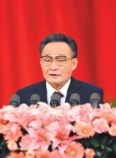 二〇一一年三月十日,十一屆全國(guó)人大四次會(huì)議在北京人民大會(huì)堂舉行第二次全體會(huì)議。吳邦國(guó)同志作全國(guó)人民代表大會(huì)常務(wù)委員會(huì)工作報(bào)告。新華社記者 謝環(huán)馳攝