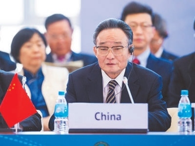 2013年1月28日,吳邦國(guó)同志在俄羅斯符拉迪沃斯托克出席亞太議會(huì)論壇第21屆年會(huì),并作題為《堅(jiān)持和平發(fā)展 促進(jìn)合作共贏》的主旨發(fā)言。新華社記者 王 曄攝