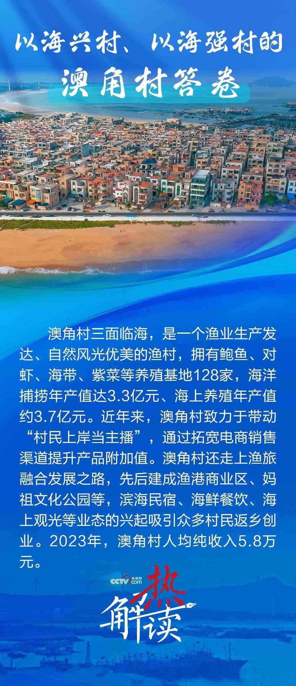 澳角村三面臨海,近年來走出了一條以海興村、以海強(qiáng)村的新路子。看到鄉(xiāng)村發(fā)生了巨變,總書記直言“鄉(xiāng)村振興還是要發(fā)揚(yáng)優(yōu)勢(shì)”,并勉勵(lì)澳角村做好“?!钡奈恼?,在鄉(xiāng)村振興、共同富裕的道路上一往無前。
