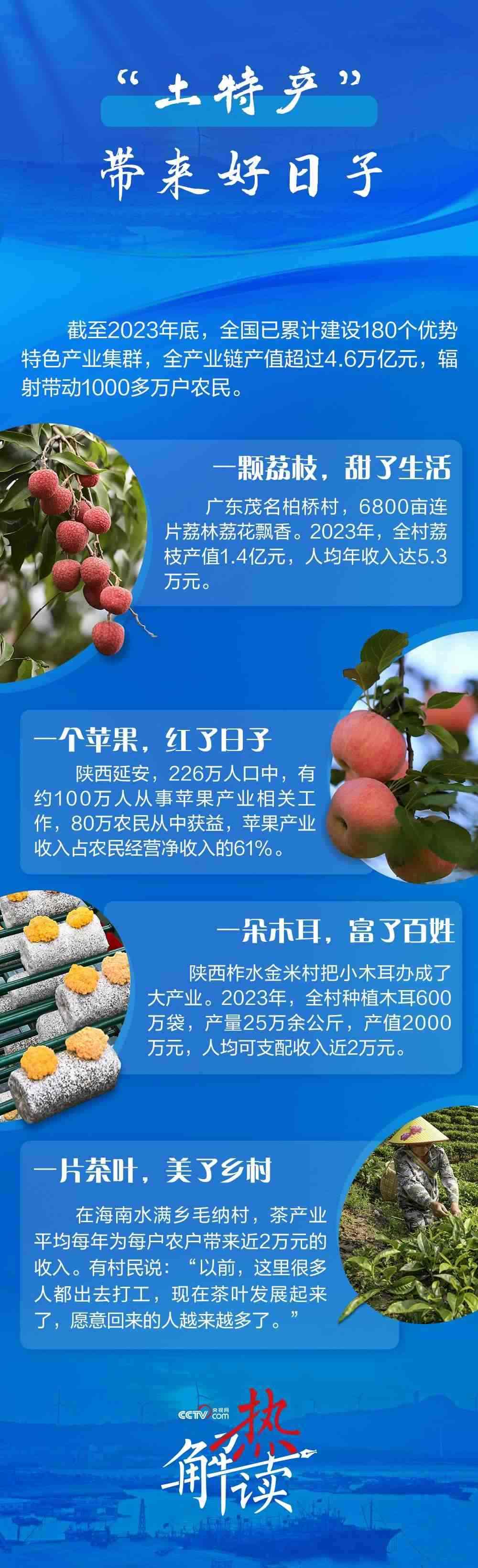 黨的二十屆三中全會(huì)通過的《中共中央關(guān)于進(jìn)一步全面深化改革、推進(jìn)中國(guó)式現(xiàn)代化的決定》提出,堅(jiān)持農(nóng)業(yè)農(nóng)村優(yōu)先發(fā)展,完善鄉(xiāng)村振興投入機(jī)制。2024年中央一號(hào)文件就“提升鄉(xiāng)村產(chǎn)業(yè)發(fā)展水平”進(jìn)行專章部署,鼓勵(lì)各地因地制宜大力發(fā)展特色產(chǎn)業(yè),支持打造鄉(xiāng)土特色品牌。