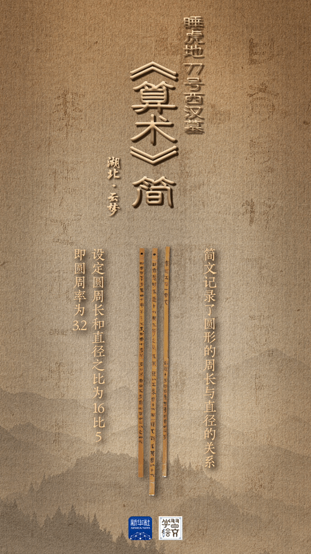 簡(jiǎn)牘里的《算術(shù)》,是古人科學(xué)智慧的精彩呈現(xiàn)。三枚關(guān)于計(jì)算圓形田地面積方法的西漢簡(jiǎn)牘保存完好,為首次公開(kāi)展出。“有睘將來(lái)直十六與五侍之”,睡虎地漢簡(jiǎn)中列舉的這道算術(shù)題顯示,周長(zhǎng)和直徑之比為16:5,即圓周率為3.2,證明秦漢之際已有人認(rèn)識(shí)到比3更精確的圓周率,為出土簡(jiǎn)牘所僅見(jiàn),尤其珍貴。