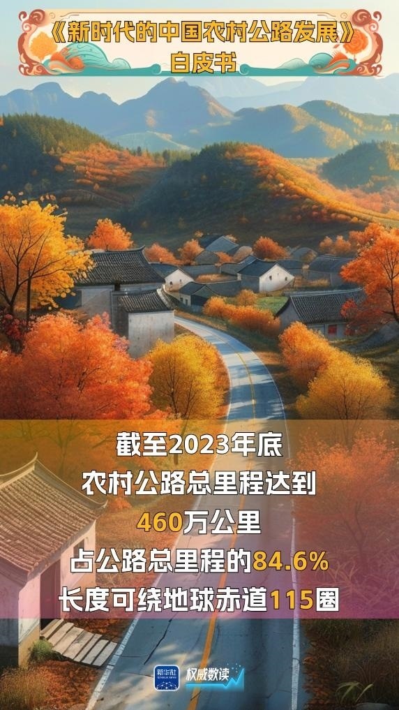 國務(wù)院新聞辦公室29日發(fā)布的《新時代的中國農(nóng)村公路發(fā)展》白皮書顯示,截至2023年底,我國農(nóng)村公路總里程增長到460萬公里,占公路總里程的84.6%,目前已形成了“外通內(nèi)聯(lián)、通村暢鄉(xiāng)、客車到村、安全便捷”的農(nóng)村交通運輸網(wǎng)絡(luò),帶動農(nóng)村地區(qū)整體面貌發(fā)生了巨大變化。