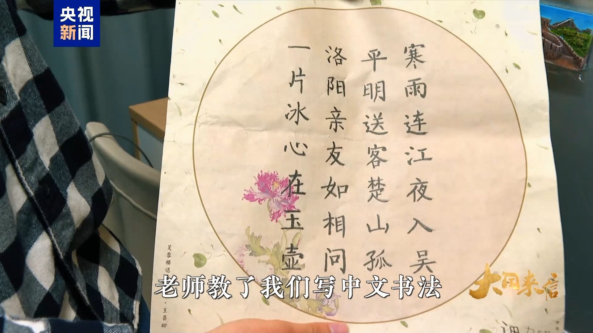 美國肯恩大學(xué)學(xué)生 亞歷山德羅·迪·雷奧:這些漢字是我們在中文課上寫的,老師教了我們寫中文書法,我們就寫了這些。