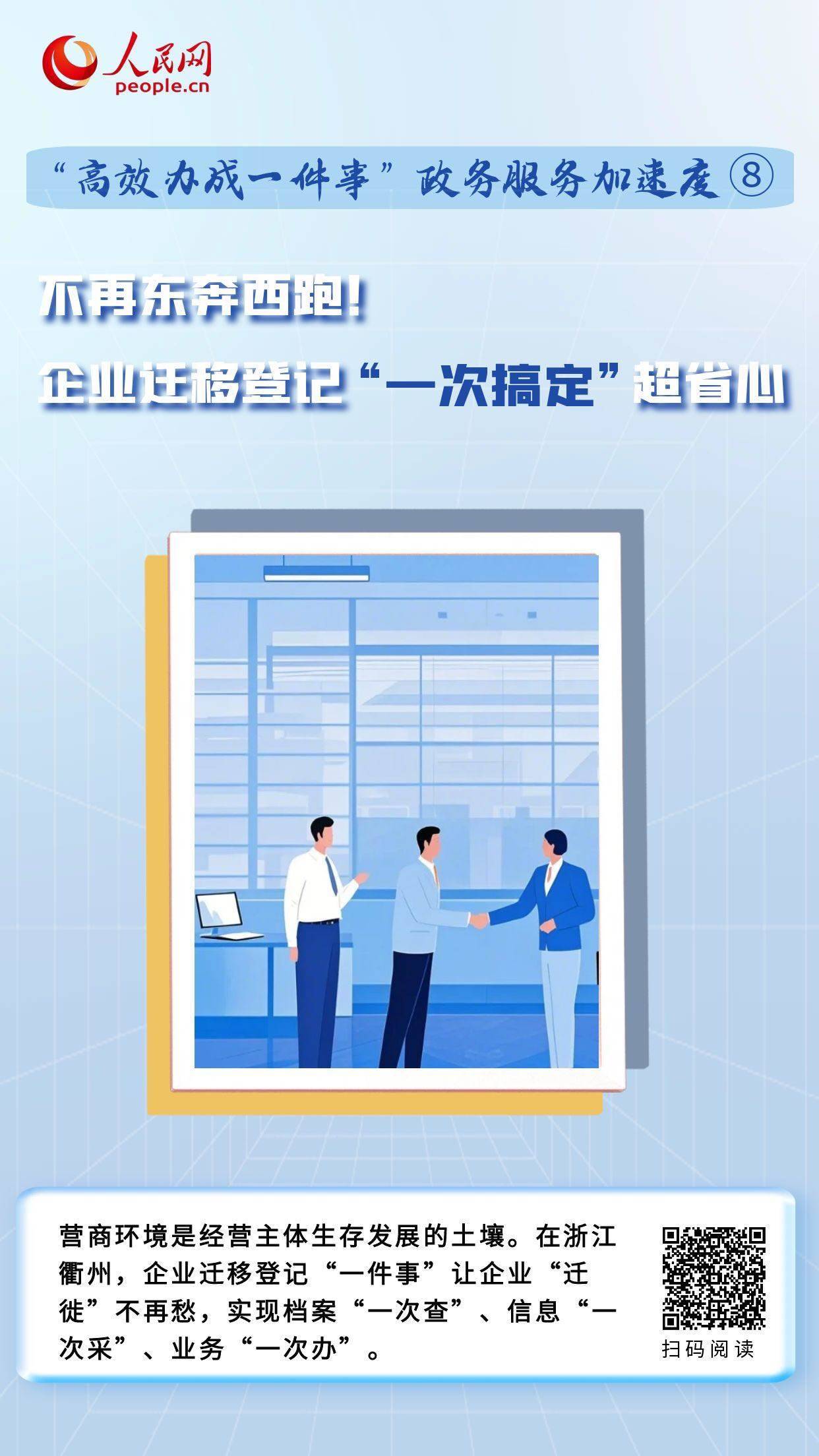 在浙江衢州,企業(yè)“遷徙”不再愁,通過建立線下協(xié)同、線上議題聯(lián)動機(jī)制,將原先企業(yè)遷移涉及7個部門15個環(huán)節(jié),壓減為通過“1個平臺、1個環(huán)節(jié)”,實現(xiàn)檔案“一次查”、信息“一次采”、業(yè)務(wù)“一次辦”。