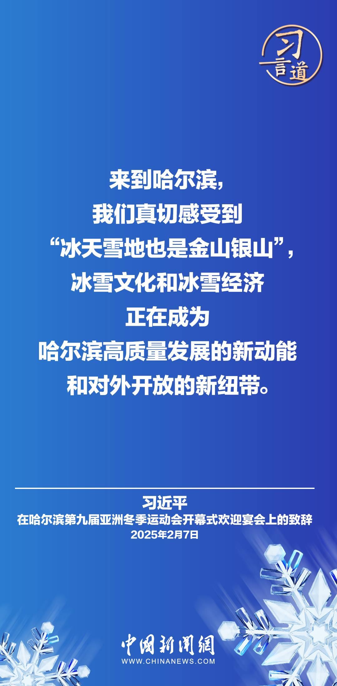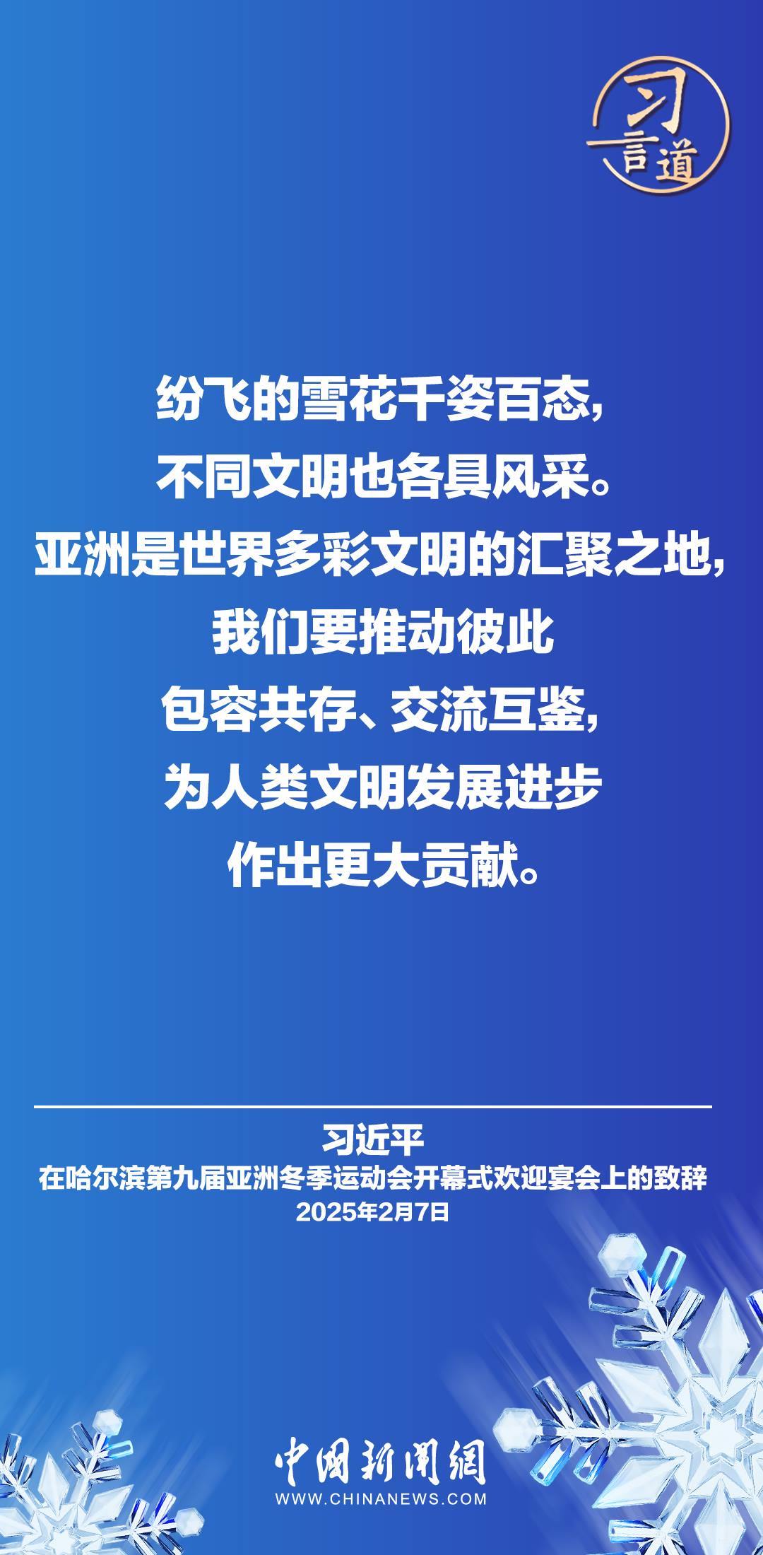 2月7日,國(guó)家主席習(xí)近平和夫人彭麗媛在黑龍江省哈爾濱市舉行宴會(huì),歡迎來華出席哈爾濱第九屆亞洲冬季運(yùn)動(dòng)會(huì)開幕式的國(guó)際貴賓。習(xí)近平主席在致辭時(shí)指出——