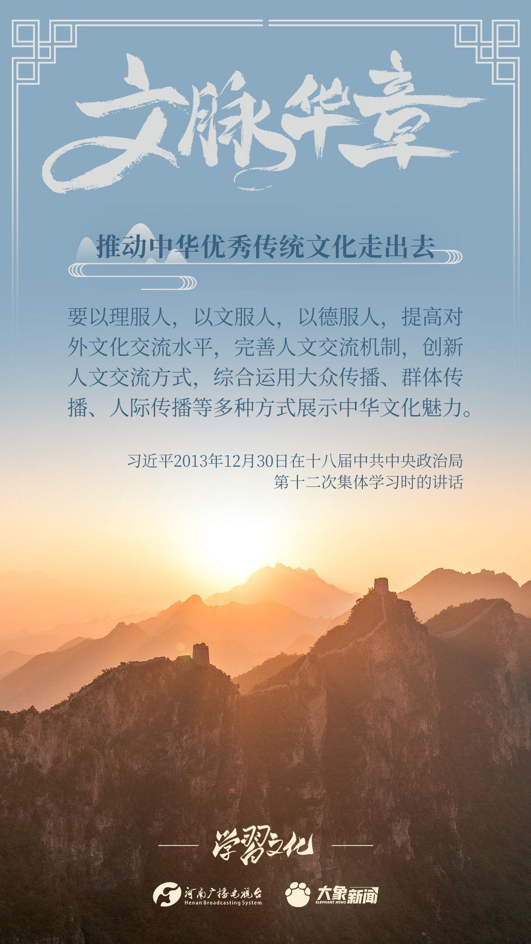 黨的十八大以來,習(xí)近平總書記高度重視中華優(yōu)秀傳統(tǒng)文化的傳承發(fā)展,突出強調(diào)推動中華優(yōu)秀傳統(tǒng)文化走出去,作出了一系列重要論述,大象新聞邀您一起學(xué)習(xí)。