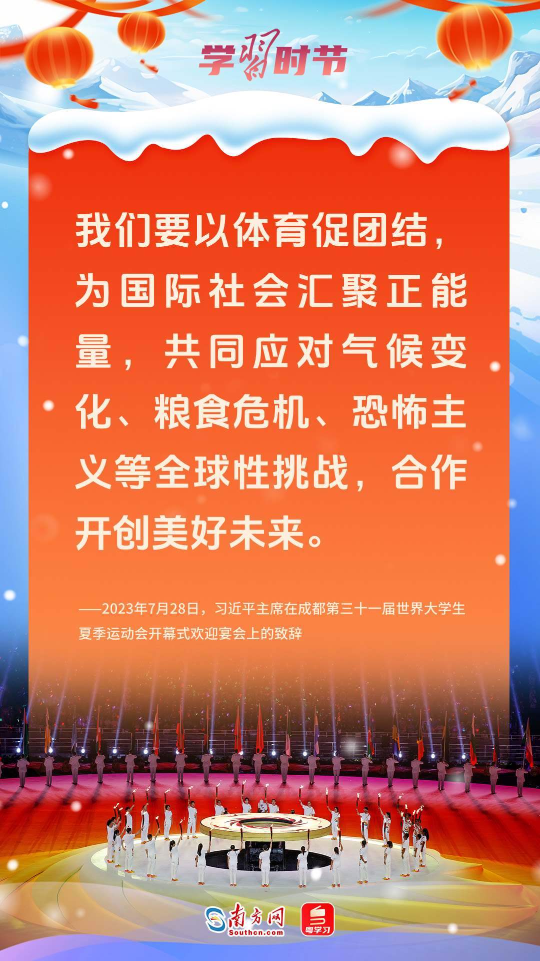 體育是增進(jìn)人民友誼的紐帶,習(xí)近平總書記多次強(qiáng)調(diào)以體育促進(jìn)團(tuán)結(jié)與和平,推動國之交、民相親。這個元宵節(jié),讓我們一起重溫習(xí)近平總書記的深刻話語,以體育精神匯聚團(tuán)結(jié)和平力量。