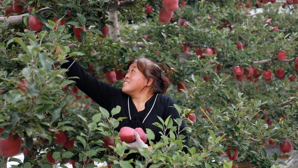 在甘肅天水,豐收時(shí)節(jié)的果實(shí)綴滿枝頭。火紅的蘋果,連接著鄉(xiāng)村全面振興的美好未來。