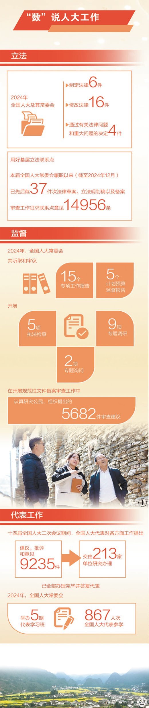 這一年,全國人大及其常委會(huì)認(rèn)真行使憲法法律賦予的立法權(quán),加強(qiáng)重點(diǎn)領(lǐng)域、新興領(lǐng)域、涉外領(lǐng)域立法,深入推進(jìn)科學(xué)立法、民主立法、依法立法,不斷完善以憲法為核心的中國特色社會(huì)主義法律體系,2024年全國人大及其常委會(huì)制定法律6件,修改法律16件,通過有關(guān)法律問題和重大問題的決定4件。