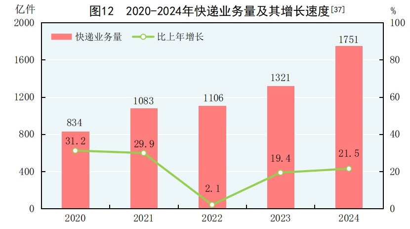 [37]2024年快遞業(yè)務(wù)量統(tǒng)計(jì)口徑調(diào)整,增速按可比口徑計(jì)算。