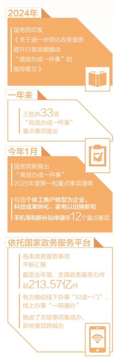 政府工作報告提出,“健全‘高效辦成一件事’重點事項清單管理和常態(tài)化推進機制,完善覆蓋全國的一體化在線政務(wù)服務(wù)平臺?!?/p>
