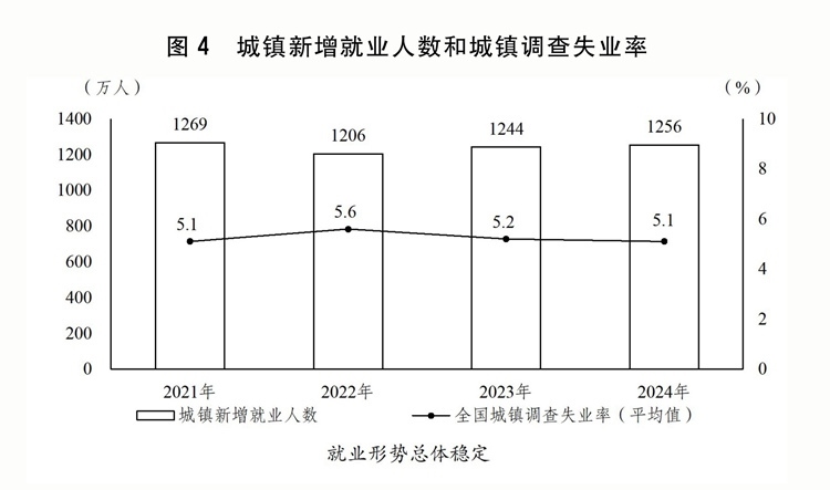 ——全國城鎮(zhèn)調(diào)查失業(yè)率5.5%左右,城鎮(zhèn)新增就業(yè)1200萬人以上。關(guān)于全國城鎮(zhèn)調(diào)查失業(yè)率,主要考慮:2025年重點(diǎn)人群就業(yè)壓力仍然較大,將城鎮(zhèn)調(diào)查失業(yè)率目標(biāo)定為5.5%左右,與2024年保持一致,體現(xiàn)了加大穩(wěn)就業(yè)力度的導(dǎo)向。關(guān)于城鎮(zhèn)新增就業(yè),主要考慮:2025年需在城鎮(zhèn)就業(yè)的新成長勞動(dòng)力規(guī)模進(jìn)一步增加,就業(yè)總量與結(jié)構(gòu)性矛盾依然突出,1200萬人以上的預(yù)期目標(biāo)與2024年目標(biāo)保持一致,能夠更好體現(xiàn)穩(wěn)就業(yè)惠民生的力度和決心;同時(shí),隨著經(jīng)濟(jì)持續(xù)回升向好,就業(yè)政策持續(xù)發(fā)力,實(shí)現(xiàn)這一目標(biāo)是有支撐的。