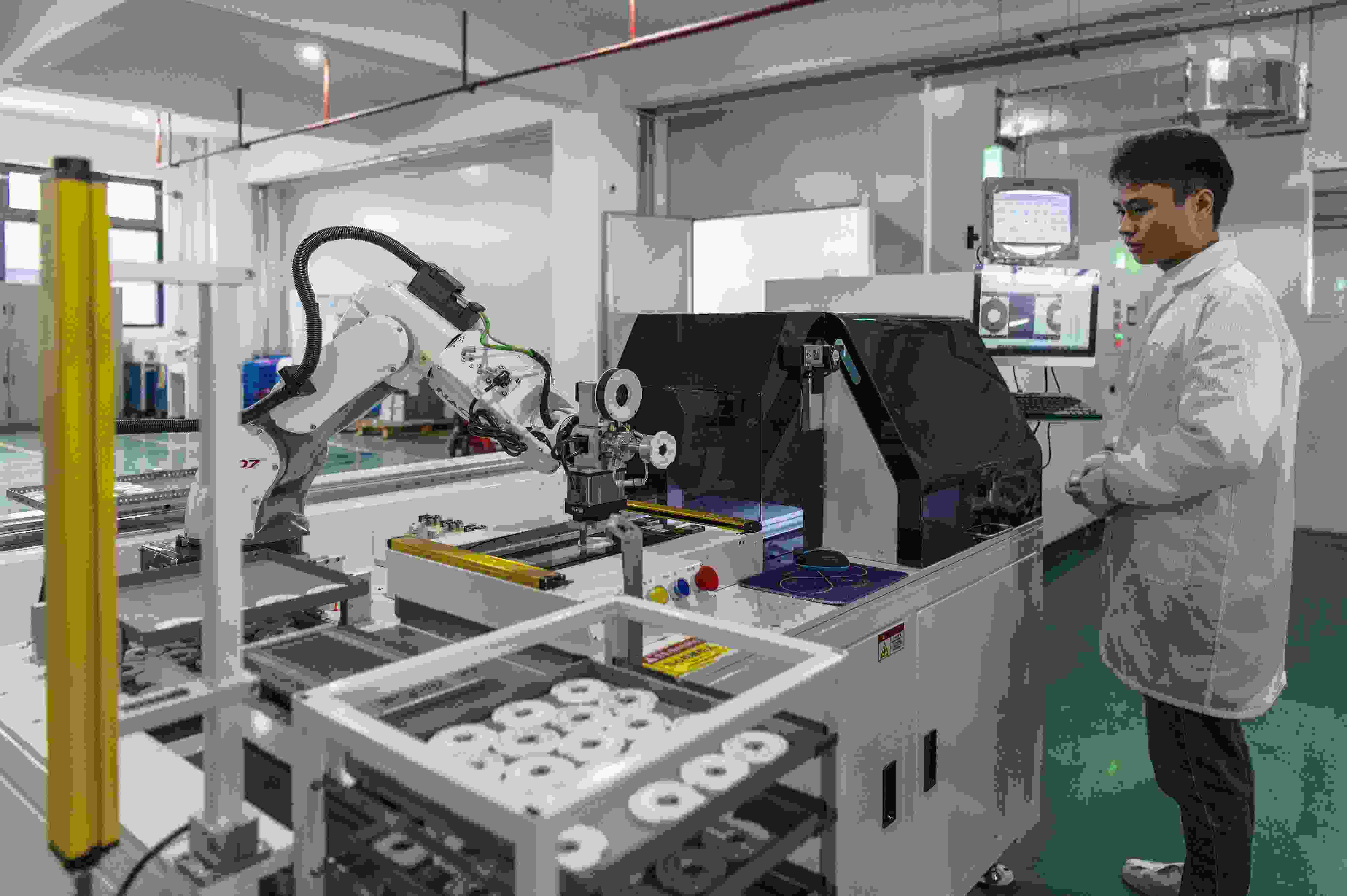 △2025年3月11日,在浙江省金華市浦江三思光電技術(shù)有限公司自動化生產(chǎn)線上,一只只機械臂靈活運轉(zhuǎn)著,趕訂單、忙生產(chǎn)。