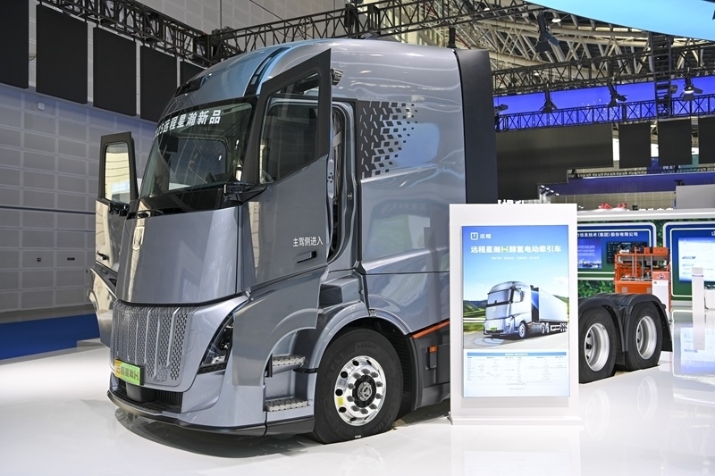 這是在2025年山西(太原)能源產(chǎn)業(yè)博覽會上展示的一款醇?xì)潆妱訝恳嚕?月27日攝)。