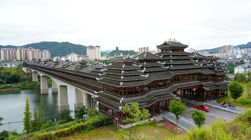 侗族風(fēng)雨橋是侗族木構(gòu)建筑的代表之一。廣西柳州市三江侗族自治縣現(xiàn)有侗族風(fēng)雨橋200余座,如三江宜陽風(fēng)雨橋、程陽永濟(jì)橋等。