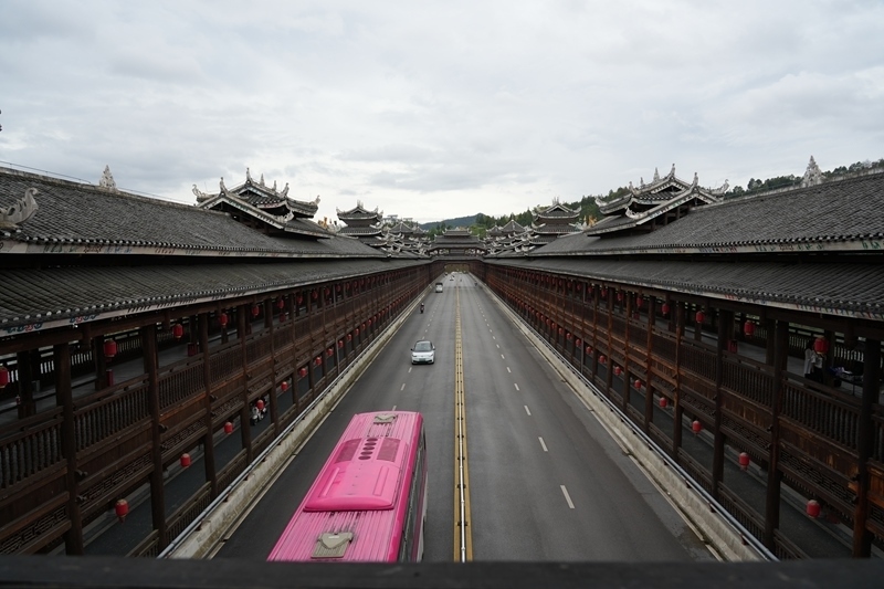 這是9月25日拍攝的三江侗族自治縣的程陽永濟(jì)橋。該橋建成于1924年,整座橋梁搭建時(shí)不用一釘一鉚,主要由木料和石料建成,橋長近80米,寬近4米,高近12米,是我國建筑藝術(shù)中的珍品。