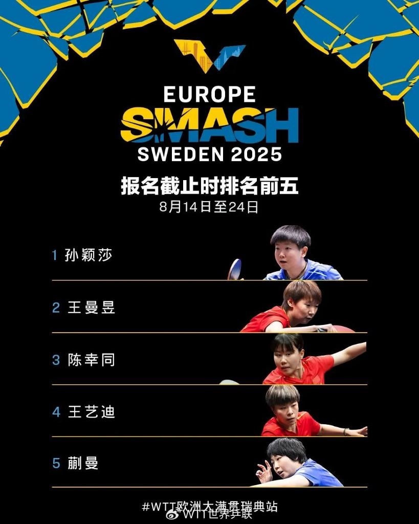 女單方面,報(bào)名截止時(shí)排名前五的運(yùn)動(dòng)員均為中國隊(duì)選手,她們是孫穎莎、王曼昱、陳幸同、王藝迪和蒯曼。國乒隊(duì)員石洵瑤、錢天一、陳熠也將出戰(zhàn)。其他協(xié)會(huì)名將包括日本的張本美和、伊藤美誠、大藤沙月和早田希娜,以及韓國的申裕斌。